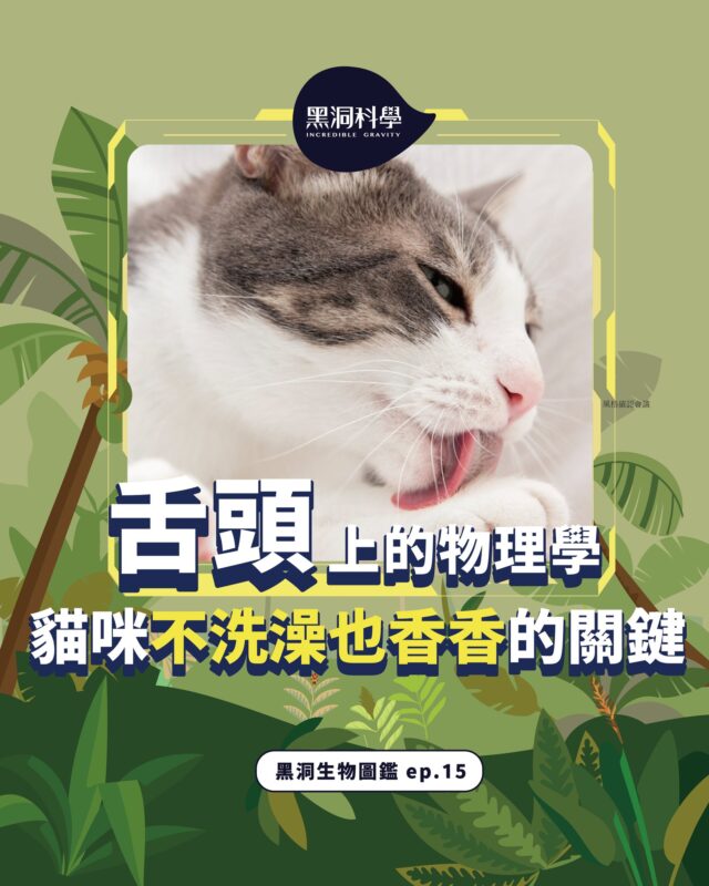【舌頭上的物理學—貓咪不洗澡也香香的關鍵】 【貓咪其實是用舌頭在洗澡!】 家貓雖不太能常用水清洗身體,但牠們每