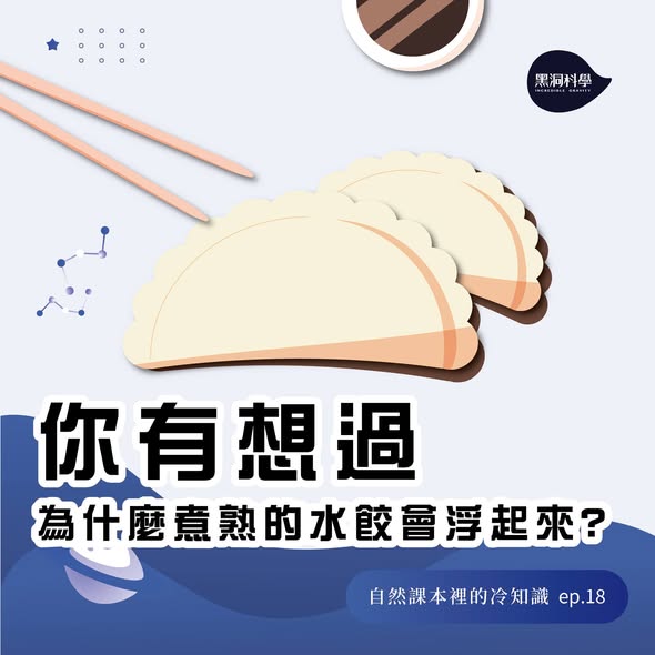 【你有想過,為什麼煮熟的水餃會浮起來?】 【未煮熟的水餃為什麼會下沉?】 當水餃的密度大於水時,他們自然會沉入