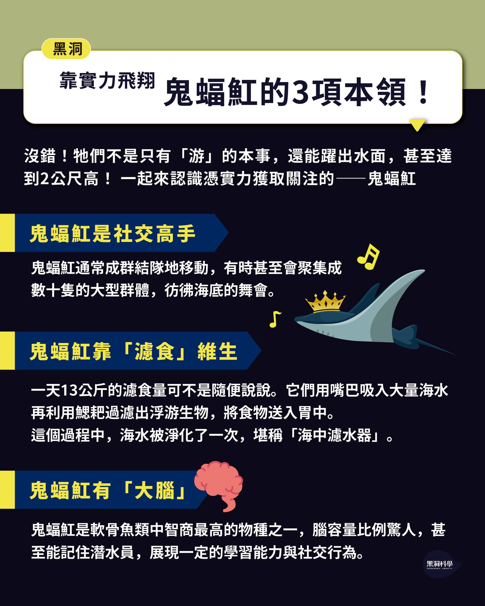 沒錯!他們不是只有「游」的本事,還能躍出水面,甚至達到2公尺高!一起來認識憑實力獲取關注的一鬼蝠虹