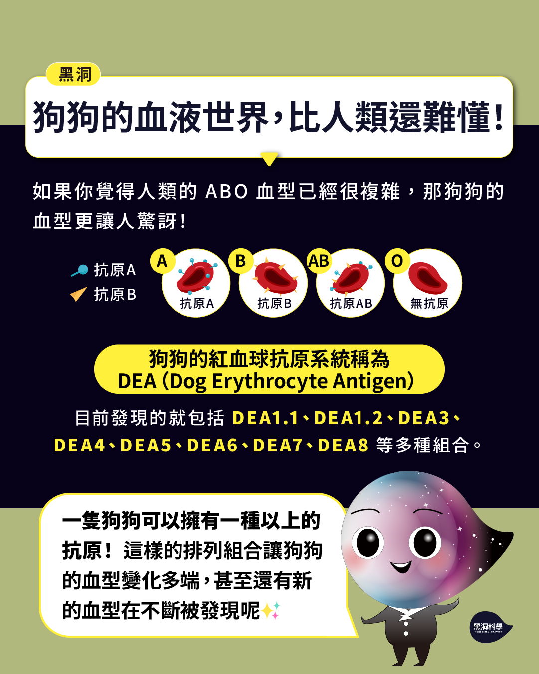 DEA代表Dog Erythrocyte Antigen表示狗的紅血球抗原