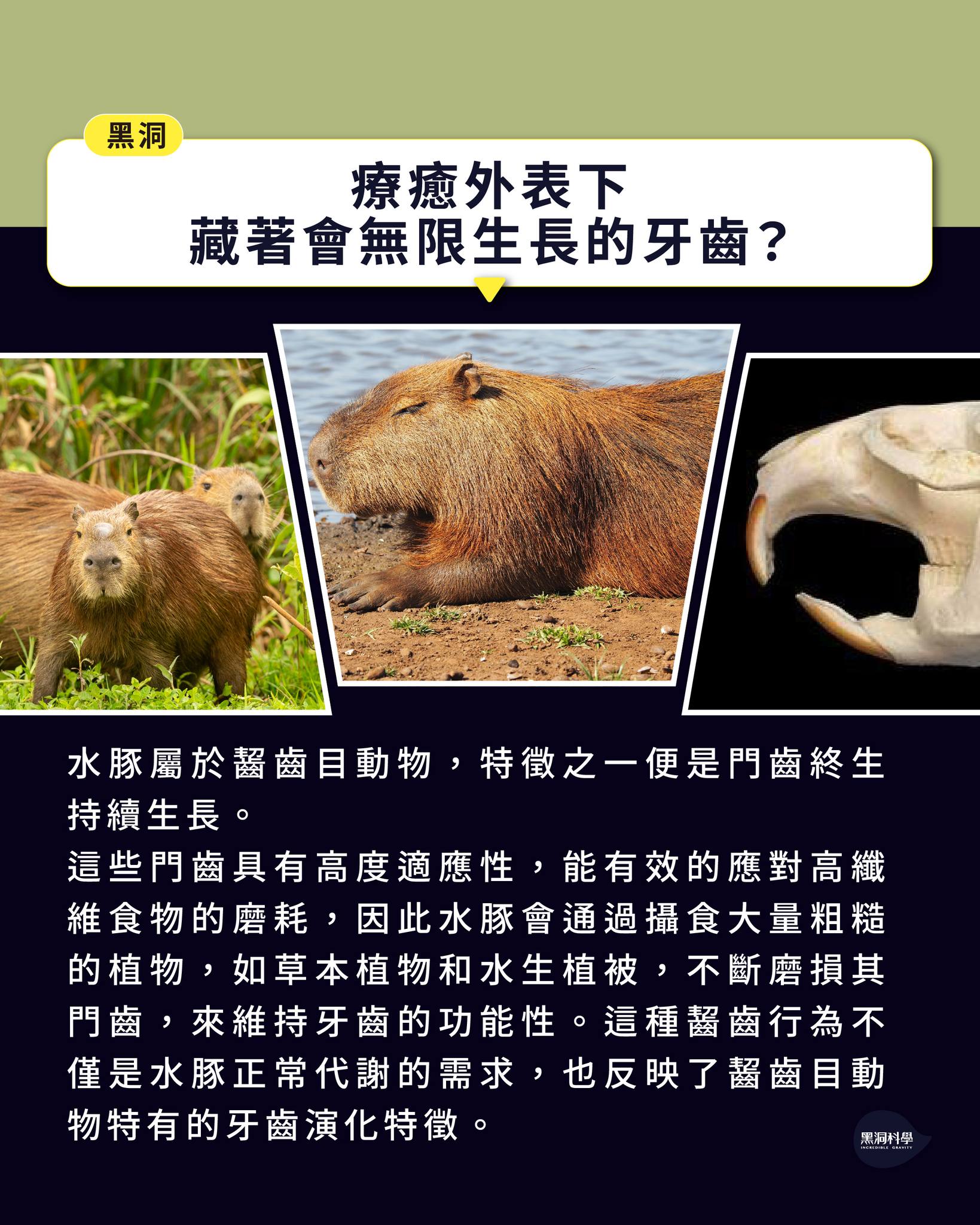 水豚屬於齧齒目動物,特徵之一便是門齒終生持續生長。