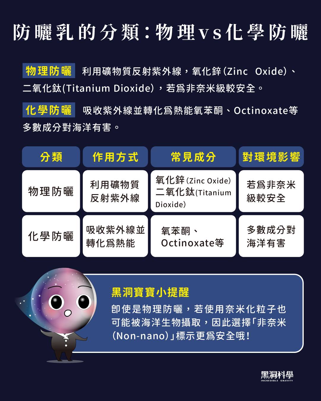 小提醒:即使是物理防曬,若使用奈米化粒子也可能被海洋生物攝取,因此選擇「非奈米(Non-nano)」標示更為安全。