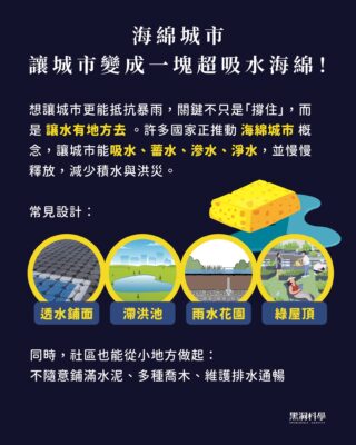 想讓城市更能抵抗暴雨,關鍵不只是「撐住」,而是「讓水有地方去」。許多國家正推動「海綿城市」概念,