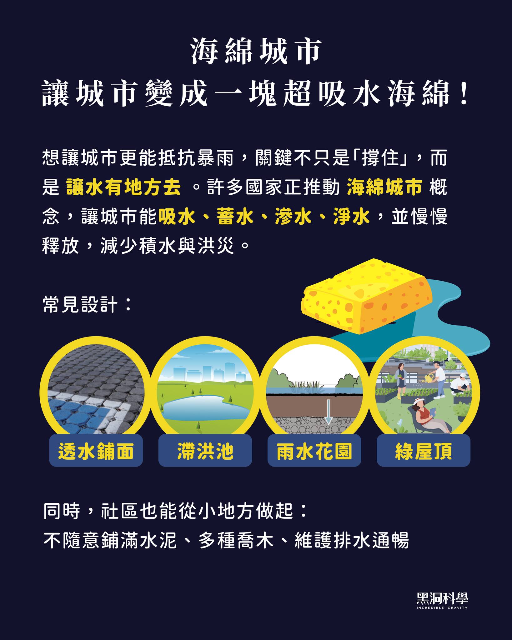 同時,社區也能從小地方開始:不隨意鋪滿水泥、種更多喬木、維護排水通暢。
