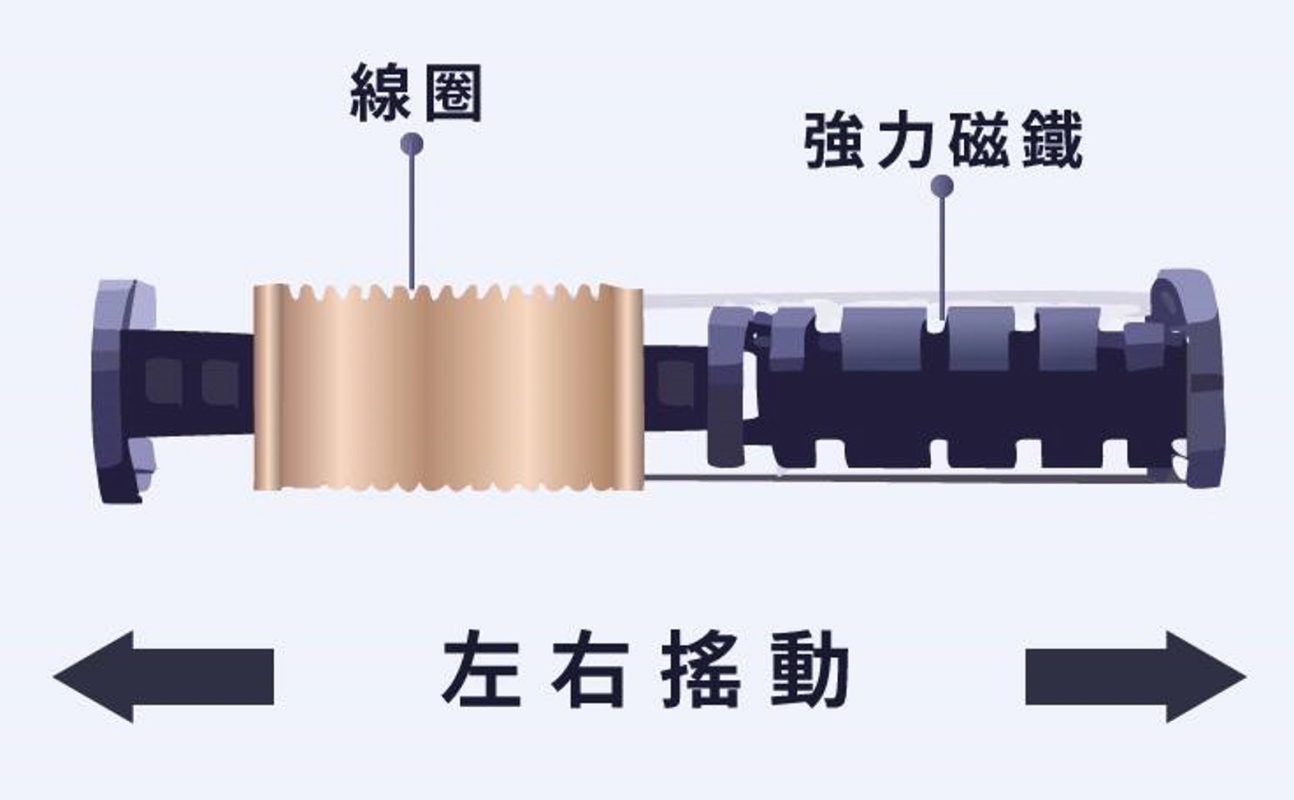 經由"搖晃"手搖式手電筒內的強力磁鐵