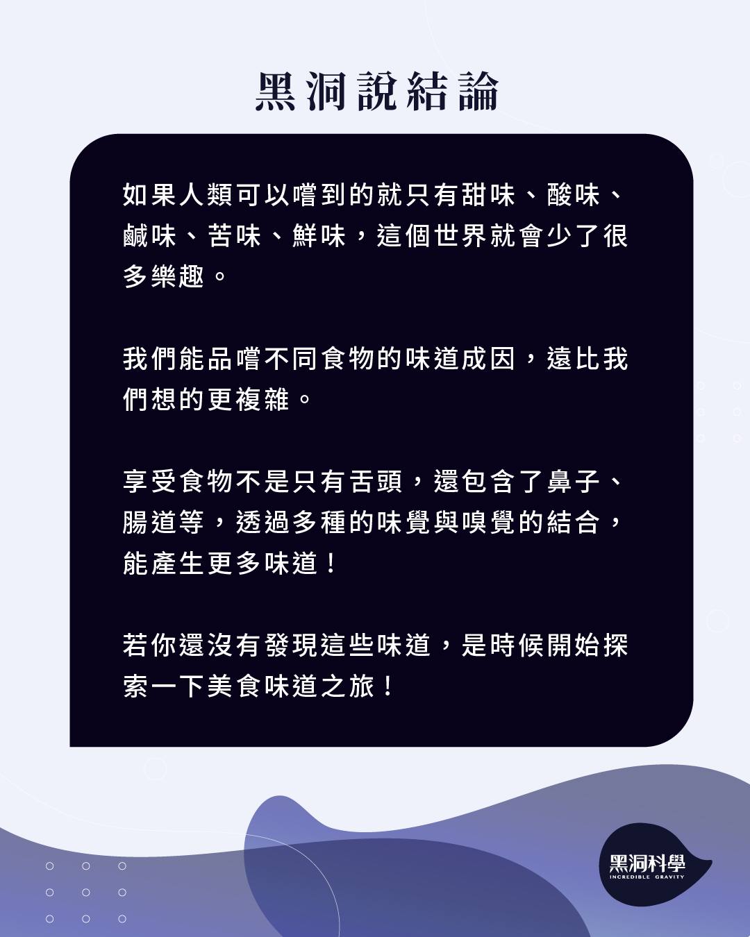 享受食物不是只有舌頭,還包含了鼻子、腸道等,透過多種的味覺與嗅覺的結合,能產生更多味道!